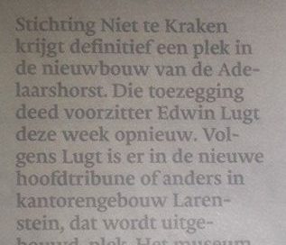 Klik hier voor een beeld- en tekstverslag n.a.v. een bezoek van het blad Staantribune aan stichting Niet te Kraken.